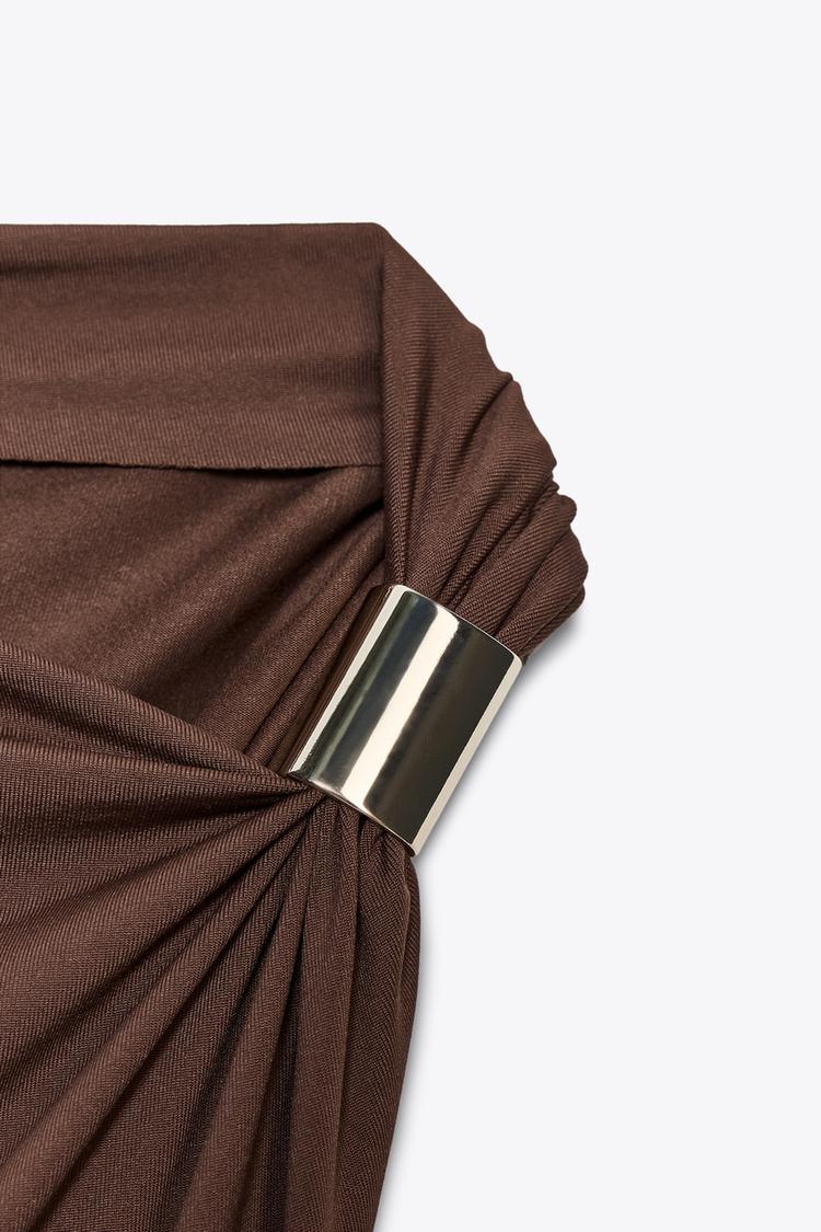 Sleek, sculpted, and undeniably confident—the Fuse Top embodies the art of understatement. Its asymmetric neckline and metallic accent create a quiet statement, merging structure with sensuality for a look that feels both effortless and electric.